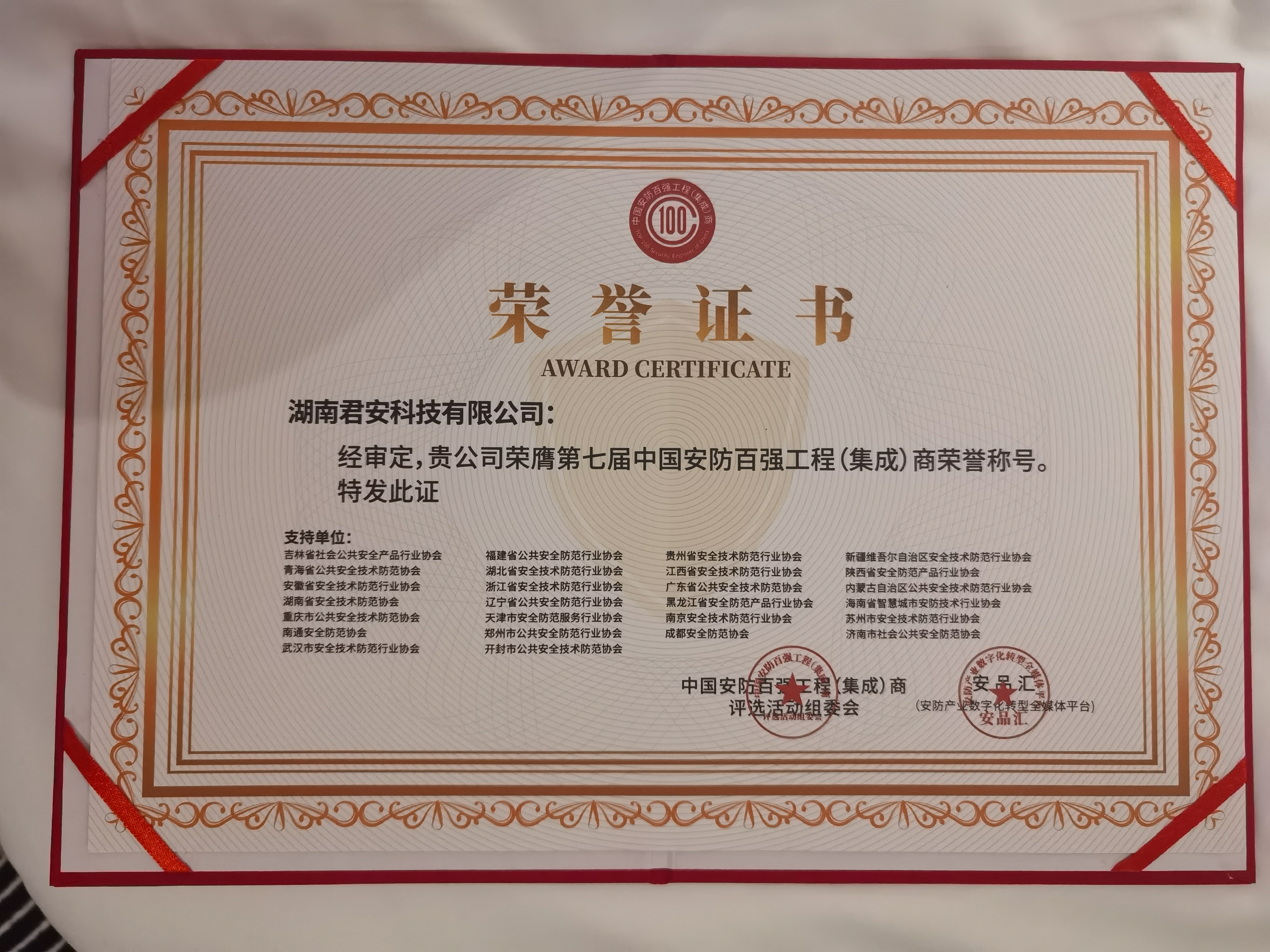 [2025/4/17]喜訊!湖南君安科技獲頒“安防百強(qiáng)工程(集成…